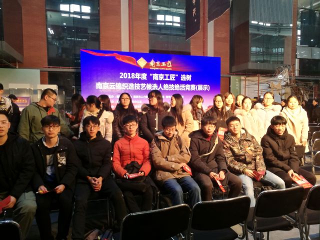 12月14日下午,威尼斯87978797历史学专业丰华琴老师代表学院应邀前往1865江苏产业园参加2018年度“南京工匠”选树,即南京云锦织造技艺候选人绝技绝活竞赛(展示)活动。历史学专业17级同学做为学生代表参加此次活动。本次活动由南京市总工会、南京市人力资源和社会保障局、南京广播电视集团主办。