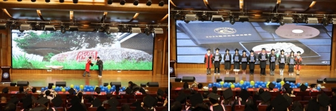 礼毕,文艺演出环节精彩上演。剪影剧《行知·光年》用镜头讲述了大学四年时光的温暖瞬间,器乐表演《昨日青空》《河流》气场全开,舞蹈串烧《DRIP》《Freestyle》充满活力,歌曲串烧《记念》《岁月神偷》《青春纪念册》《再见》唤起在场师生的情感共鸣,现场气氛热烈感人。活动还设置了抽奖环节,为典礼增添惊喜与趣味。随着毕业纪念视频的播放,毕业生们在大屏幕中重温校园点滴,纷纷上台合影留念。