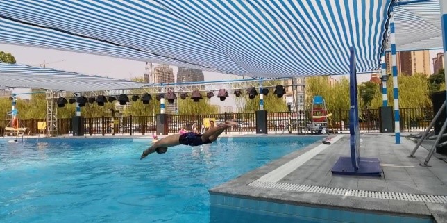 在这里认识了一位投缘的朋友,人们说“三人行必有我师”,我觉得不然,在彼此的互相督促下,练会了“鱼跃式入水”和 “翻滚蹬壁蝶泳腿”。