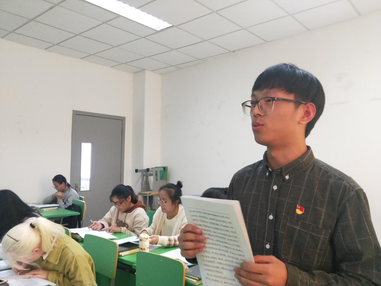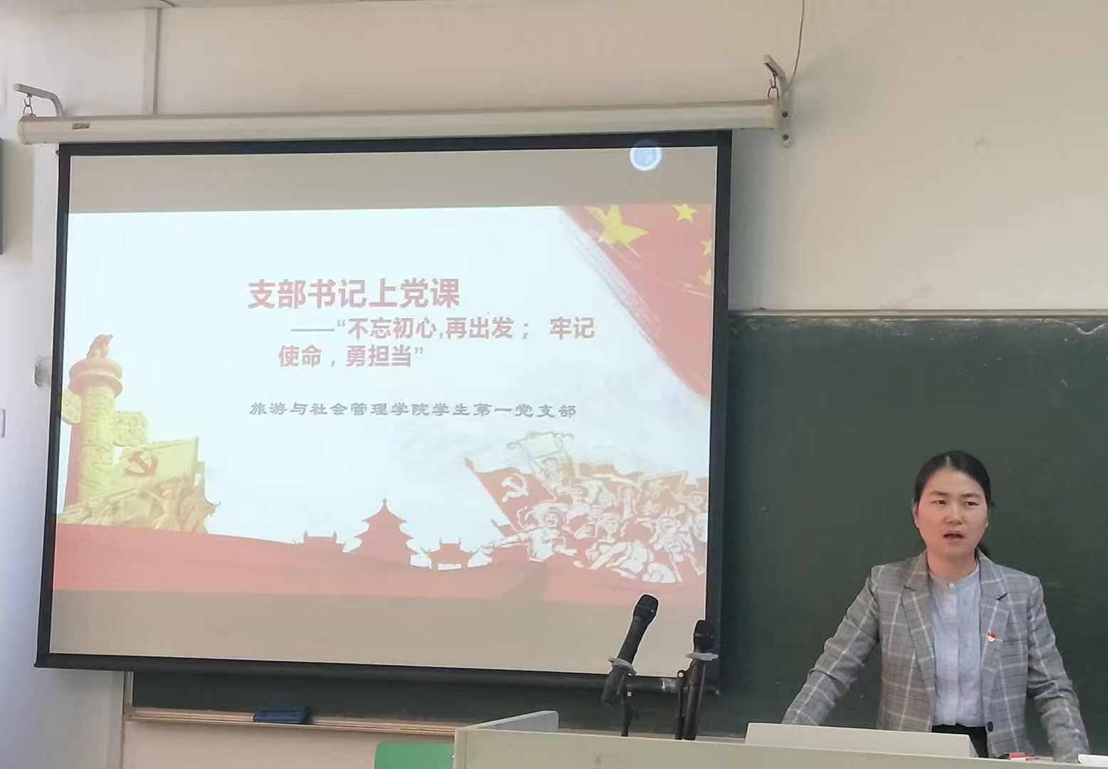 11月5日下午3点,在文南301教室,旅游与社会管理学院学生第一党支部开展了“支部书记上党课”主题教育活动,全体党员同志在“四重四亮”中重温了初心和使命。党课由学生第一党支部书记葛茹授课。