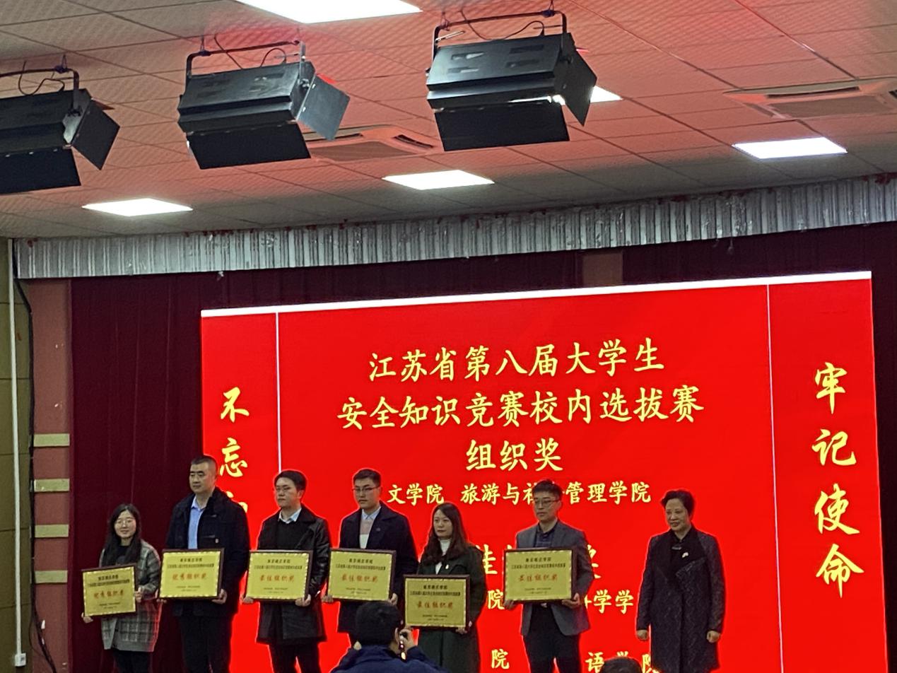 在江苏省第八届大学生安全知识竞赛南京晓庄学院校内选拔赛中,我院认真组织,学生积极参加,我院荣获校内选拔赛优秀组织奖。