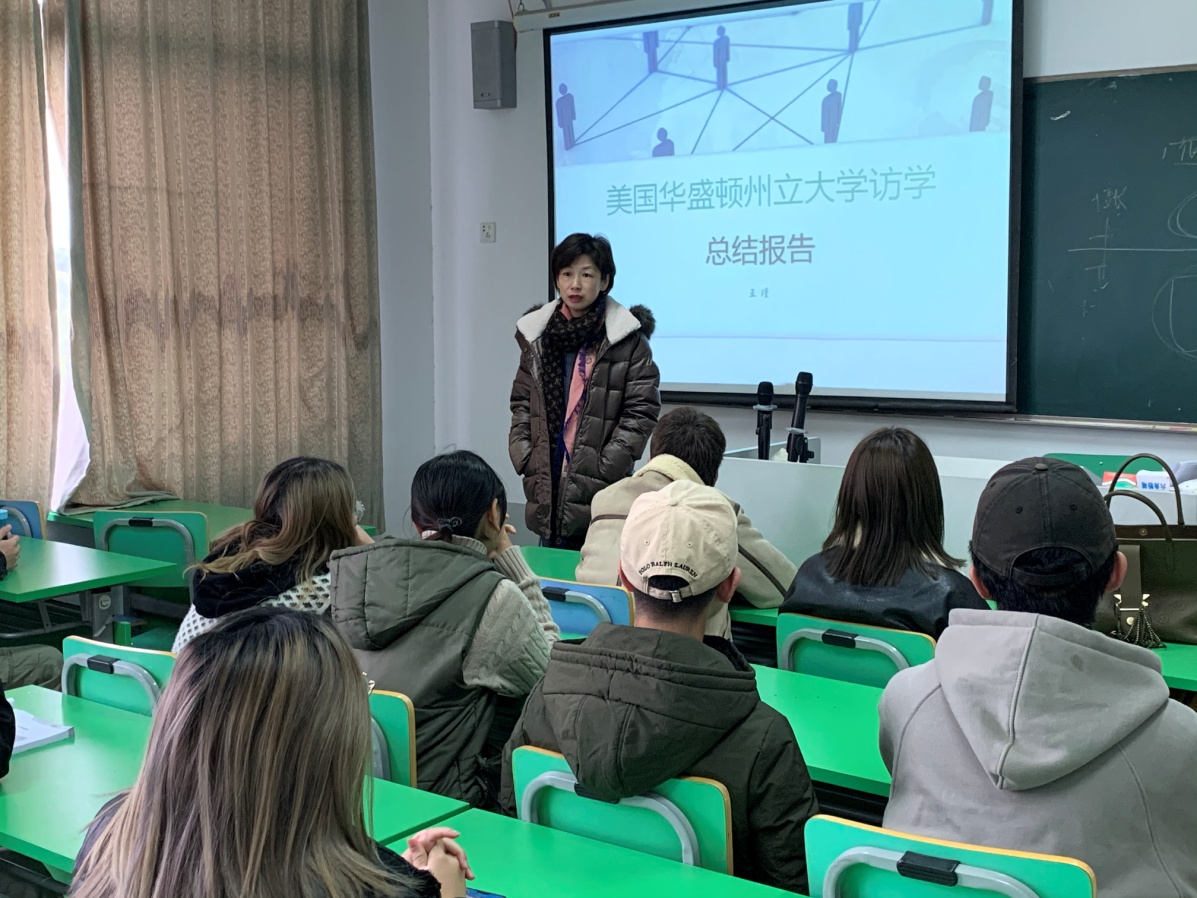 11月28日上午,我院酒店管理专业王瑾老师在崇一楼309教室举办了赴美访学汇报交流会,18酒店管理专业全体学生参会。