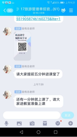 线上教学以来,旅行社院开展了一系列工作,促进线上教学质量提升。一是学院领导班子听课。班子成员听课不少于10次,并完成听课记录,并对线上教学的听课情况反馈给教师,提高教师在线教学质量。二是各教研室组织教师互相听课。教研室主任听课不少于4次,老师互听不少于3次,听课后交流分享教学体验经历。三是教研室开展线上教学研。教师们围绕在线课程教学方法、在线课程教学模式、直播课中效果等内容进行热烈讨论,相互学习,取长补短,共同推动在线教学质量提高。四是开展线上教学问卷调查。及时收集学生课堂反馈意见,不断优化在线课堂。