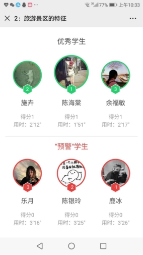 6.学习平台助管理。线上教学平台在学习管理方面优势明显,老师们充分利用平台开展学生学习管理,学生在课程签到、课堂表现、课后主题讨论、单元作业的完成方面一目了然。通过学生们的平台表现给予学生反馈,及时提醒她们进行学习行为的纠正。