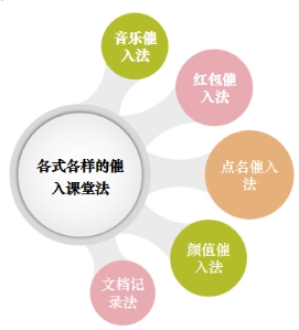 1.线上签到显神通。教师们充分利用各种签到方式提醒学生进入课堂,开展学习。线上教学开始时,老师们发现有的学生看似签到,但实则是另一种非课堂状态,于是老师们创造出诸如音乐催入法、红包催入法、点名催入法、颜值催入法、文档记录法等帮助学生尽快进入课堂学习状态。