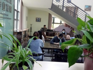 教师在线上开展理论教学,根据课程教学内容,利用学院户外优良的教育平台,开展户外沙龙式教学,考虑到疫情期间的特殊要求,学生以四人为小组,开展讨论发言,教师进行户外交流与点拨,文浚院成了户外沙式教学的好地方。《国外社会学理论》是一门理论程度较高的课程,较多深奥的理论需要学生线上学习和线下内化吸收,然后教师利用户外平台开展沙龙式教学。在鸟语花香的校园里,学生享受到了户外学习的乐趣。