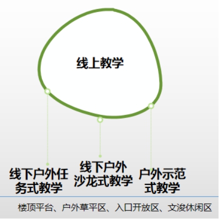 教师在线上开展教学,线下则以小组的方式开展任务式教学,利用学校的优美的自然环境和优良的户外空间开展任务式教学,《旅游摄影》是一门理论、实践要求都较高的公共选修课程。经过多次线上教学后,将课堂移入到学院后方自然空间,学生户外摄影,教师一对一、一对多方式开展教学,学生完成既定摄影任务,教师开展作品点评。通过户外任务式教学,学生在短时间内重拾校园温暖。《旅游景区管理》则根据教学内容,将整个校园模拟为景区,要求学生根据景区建设标准,带着任务观察校园的角角落落发现问题,并最终带着成果进行小组户外报告。在温暖的四月享受校园的美好时光,享受户外课程的快乐。