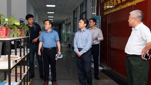 工作调研会前,张策华校长参观了旅游社会管理学院大学生创新创业中心、自主学习中心、教师办公区域和实验实训场所。