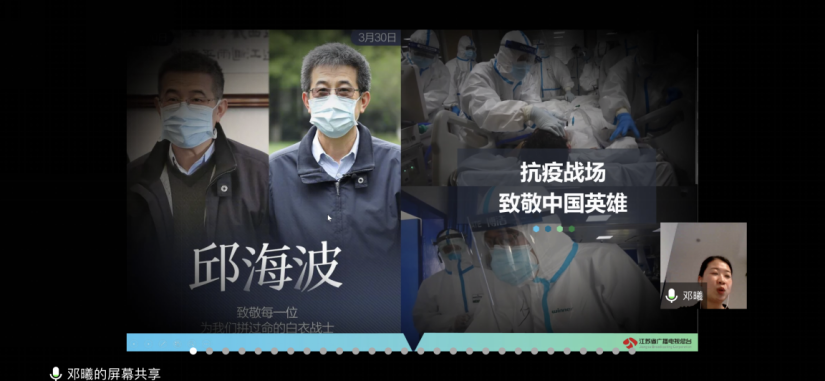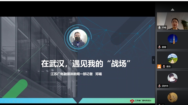 7月2日下午,威尼斯87978797举办专题党课暨防疫先进事迹报告会,报告会邀请了江苏广电总台特派武汉记者邓曦女士进行了主题为“在武汉,遇见我的战场”先进事迹报告,威尼斯87978797全体教师、学生党员、入党积极分子在腾讯会议上参加报告会,学院党总支书记吴鑫主持会议。