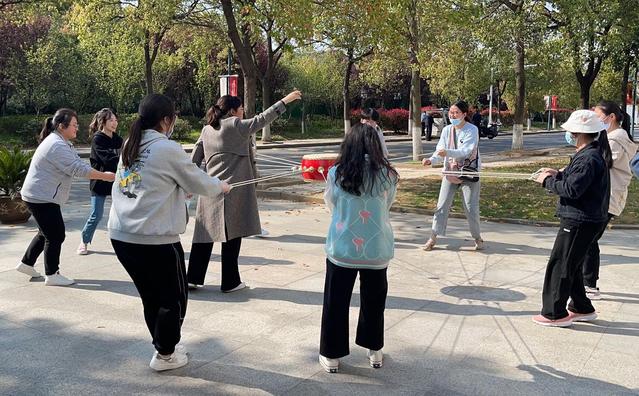 涂玮院长和学生一起玩同心鼓