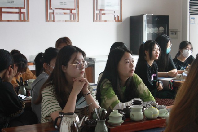 第三个项目为雨花茶,主讲人为陈盛峰老师。活动开始,陈盛峰老师先播放了自己准备的“雨花茶”介绍视频,让同学们对雨花茶的历史及产业发展有了大致了解。之后他为同学们介绍自己发扬传承雨花茶文化的经验,加深了同学们对雨花茶文化的认识。最后陈盛峰老师将雨花茶分发给大家,组织大家一起对雨花茶进行品鉴,体味雨花茶的清香幽雅、鲜爽甘醇。