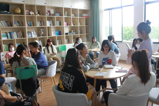 活动最后一环节读书分享部分于崇一楼文南311开展,同学们以小组圆桌形式进行互动分享、积极发言,阐述自己对于《晓庄十英烈》最为真实感受的读后感,同时也在聆听交流中感悟汲取他人的精神力量。