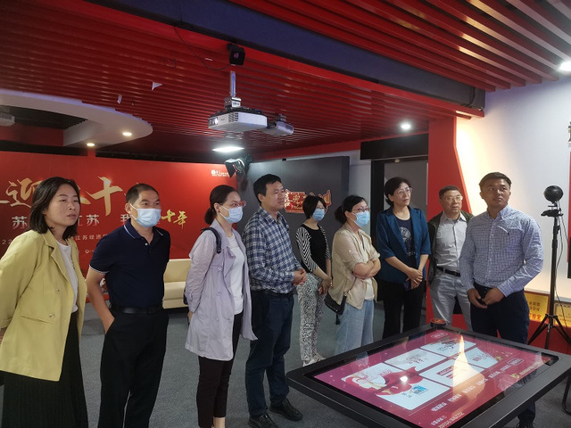 调研团队一行先后参观了江苏经济报社融媒数字展厅,参观体验了VR全景旅游、新华数字党建馆、乡村振兴馆等,提出共同探索数字技术、文化、旅游、教育融合背景下的人才培养新路径,打造校媒合作新“样版”的思路,共建共享数字“非遗”研学创新实训基地,实现资源共享、优势互补、协同发展,共同推动信息技术、文旅与教育深度融合。