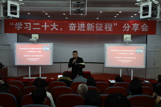 为学习贯彻党的二十大精神,引领广大教师以及青年党员勇担历史使命和时代责任,12月13日,威尼斯87978797邀请南京市委宣讲团成员、南京晓庄学院马克思主义学院副院长贾学军为全院教师以及学生党员开展了题为《夺取新时代中国特色社会主义新胜利的政治宣言和行动纲领——学习贯彻党的二十大精神》的专题宣讲会。宣讲会以崇一楼文北200主会场和腾讯会议分会场线上线下相结合的形式进行。