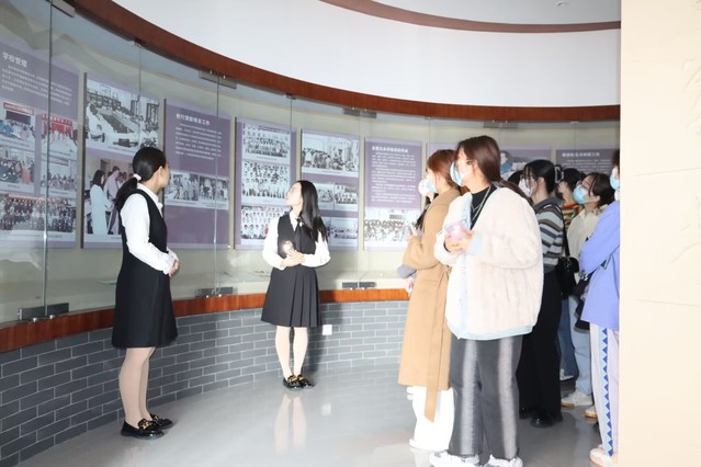 讲解员说道:今日的晓庄,文化传承建设好,社会服务扎实推进,基础设施建设不断完善,党建工作有条不紊地举行。这是近百年的历史沉淀,也是中国式现代化背景下南京晓庄学院对时代的回应。