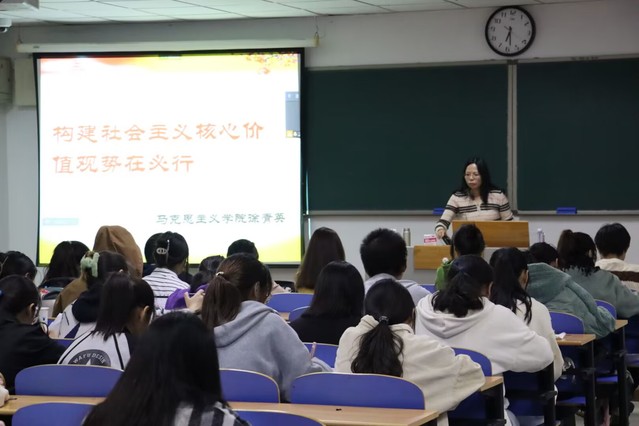 2022年11月3日晚18:30,马克思主义学院徐青英教授为威尼斯87978797和环境科学学院开展第二次入党积极分子培训班教学。本次党课的主题是《构建社会主义核心价值观势在必行》。