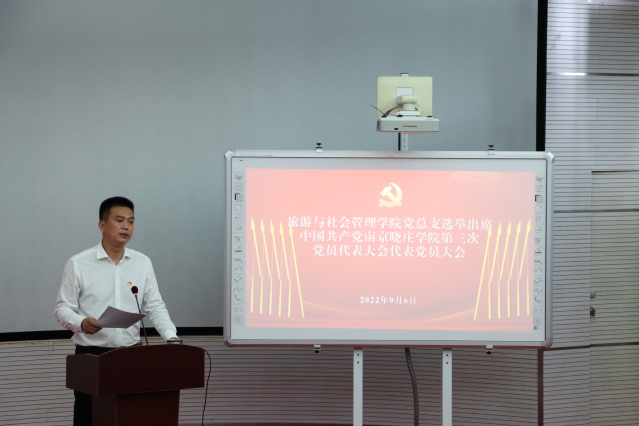 2022年9月6日下午2:00,旅游与社会管理学院党总支在文北200召开了全体党员师生大会,顺利选举产生了出席南京晓庄学院第三次党员代表大会的代表。