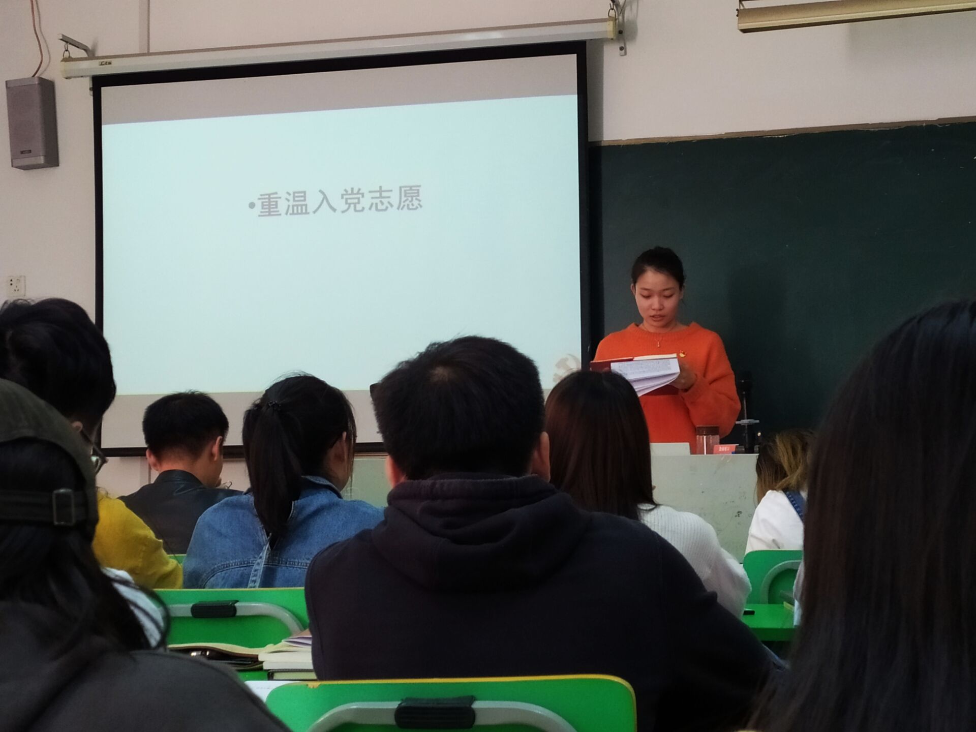 为深入学习贯彻习近平新时代中国特色社会主义思想和党的十九大精神,落实好“三会一课”制度,我院学生第二党支部开展“支部书记讲党课”及四重四亮的活动,学生第二党支部书记彭佳姝同志以“守初心,记使命,勇担当”主题,给全体党员上了一堂内容丰富的党课。