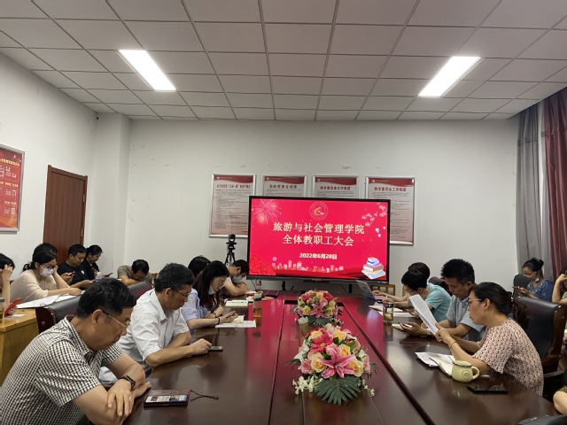 2022年6月28日下午一点半,威尼斯87978797在文南201会议室召开了全院教职工大会,会议由学院党总支书记吴鑫主持。
