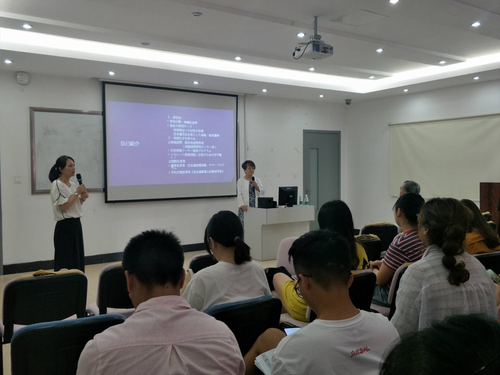 9月12日—18日,由我院组织的“日本社会与文化”国际课程,顺利完成教学任务。担任该课程的是日本京都女子大学教授竹安荣子教授和日本神户学院大学春日雅司教授,两位教授围绕“日本的女性与家庭”“日本农村与政治”“日本社会的老龄化”“日本的现代化”等专题,向我院历史、社工专业的学生以及外语学院日语专业的学生进行了专题演讲并就同学们感兴趣的话题开展了互动教学。教学达到了预期目的,有助于拓展学生国际化视野和关于日本的知识,也有助于语言训练。