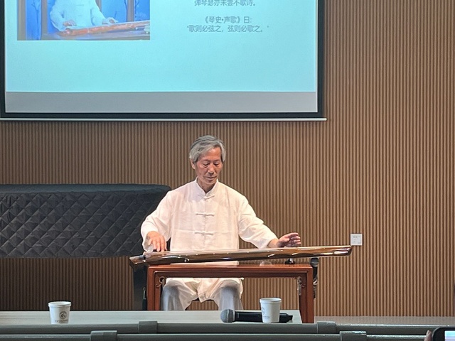 为弘扬中华优秀传统文化,提高广大学生的人文素养、艺术情趣和审美能力,丰富高校课余文化生活,科研处,威尼斯87978797和音乐学院联合主办了旅游历史文化节系列活动“古琴与中国传统文化”讲座。本次讲座邀请到了国家非物质文化遗产金陵琴派传承人,中国民族管弦乐学会古琴专业委员会理事,中国古琴学会常务理事桂世民先生。讲座上,桂老师从中国古琴的历史发展、古琴与中国传统文化的关系、古琴与古典诗词歌赋等方面展开讲解。最后,桂老师以两首代表性古琴曲目《梅花三弄》和《阳关三叠》的演奏结束了本次讲座。