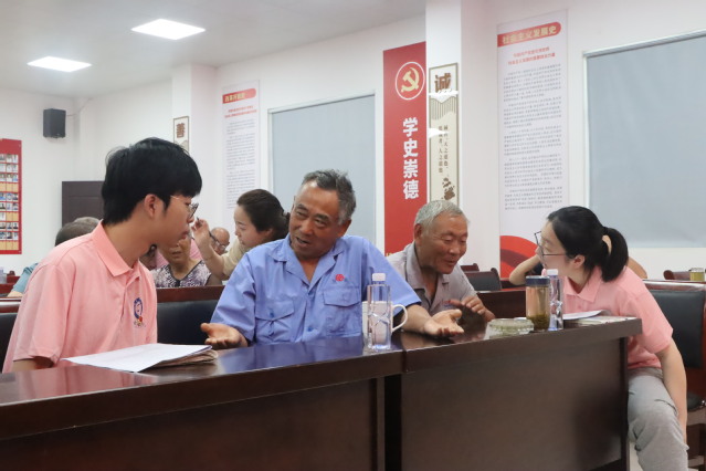 为深学笃用习近平新时代中国特色社会主义思想,深入实施“乡村振兴青年建功”行动,切实引导广大青年在社会课堂中“受教育、长才干、作贡献”,坚定信念听党话、跟党走。在学生第一党支部书记韩文琪同志的带领下,学生党员组成的一支大学生暑期“三微”社会实践服务团队前往溧水区桑园蒲社区对社区中老年人及中小学生进行微党课、微调研和微访谈。
