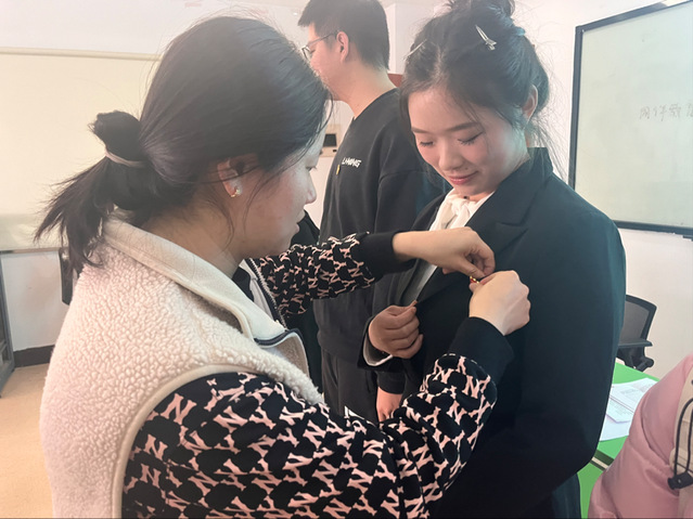 支部书记韩文琪为新接收预备党员佩戴党员徽章