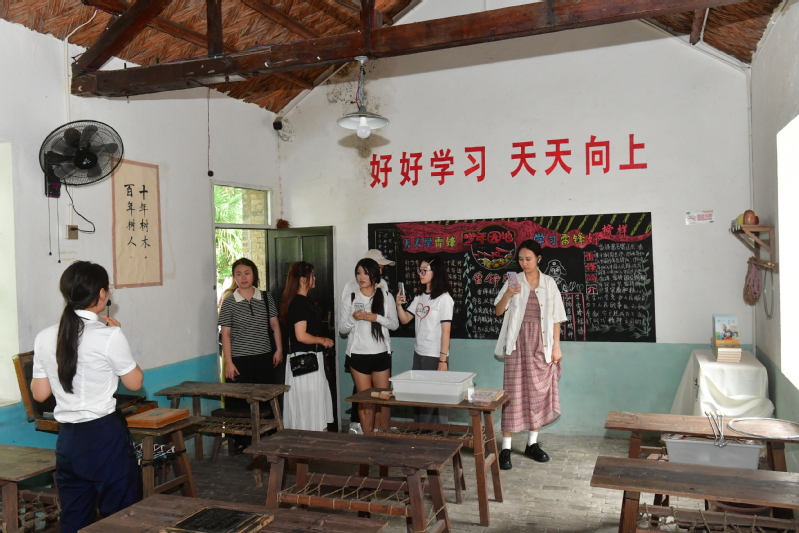 研学团师生参观了儿童文学作家曹文轩家乡所在地——位于盐城盐都的西乡在以儿童文学作品《草房子》命名的主题乐园里,研学团师生参观了草房子主题酒店的4大主题房游览了“上学路上”“研学教育”“素质拓展”等主题区域“追忆怀旧”区 ,实地参观了曹文轩小时候学习生活的地方,也是他创作的源泉——麻地小学感受了漆扇和扎染布艺非遗技艺曹文轩文学馆,师生参观了解了曹文轩教授的成长故事、学术和创作成果,观看了真人剧《金色的草房子之最英俊的少年》,沉浸式体验了《草房子》作品中描写的乡村生活场景盐城人民的母亲河——蟒蛇河,研学团参观三胡故里、漫步蟒蛇河水上文化生态廊道盐城千年古镇龙冈的龙冈桃花源景区师生参观了“五七一工程遗址”,进梨园采摘品尝生态梨,学习自助烹饪
