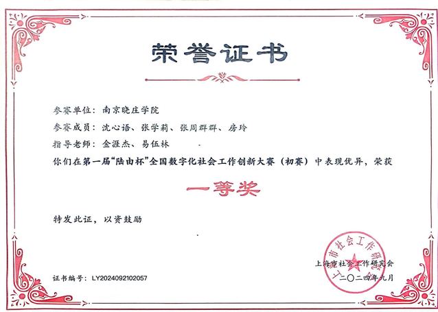 晓庄学子获得“陆由杯”全国数字化社会工作创新大赛一等奖
