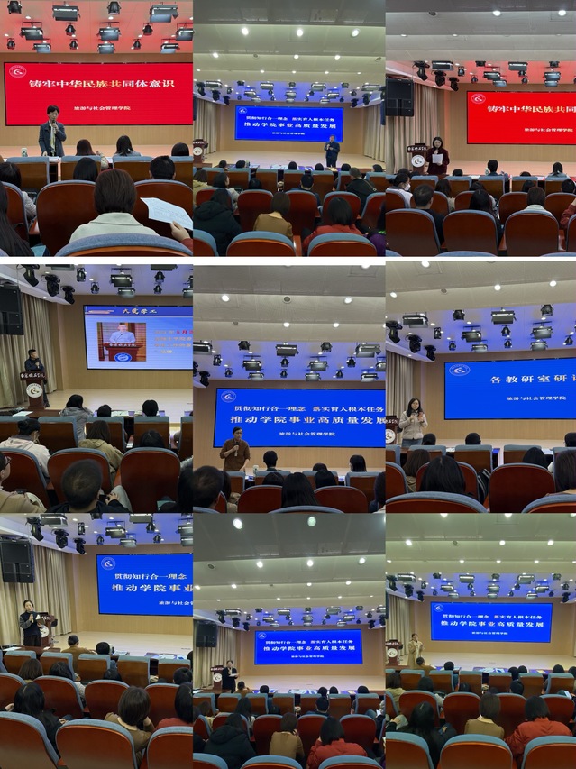 会议分三个阶段进行。在第一阶段,学院党委书记带领全体教职工就党风廉政建设、铸牢中华民族共同体意识、落实师德第一标准严守纪律规矩底线、安全工作等方面的内容进行了学习;会议学习并传达了2024全国社会工作创新发展大会和南京旅游高质量发展大会精神,引导教师积极了解社会和专业最新动态,发挥学科专业优势,助推学院和学校事业发展。