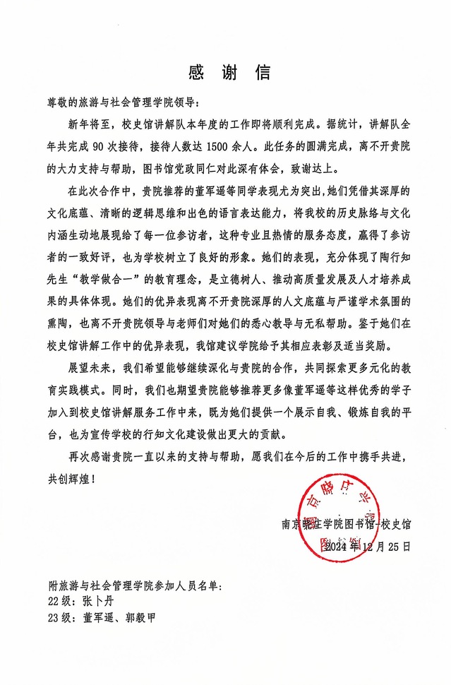 图书馆为我院发来感谢信